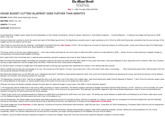 06/05/1997 H.Con.Res.84 Establishing the congressional budget for the United States Government for fiscal year 1998 and setting forth appropriate budgetary levels for fiscal years 1999, 2000, 2001, and 2002. 06/05/1997 Senate agreed to conference report by Yea-Nay Vote. 76-22. Record Vote No: 96.  (All Actions)