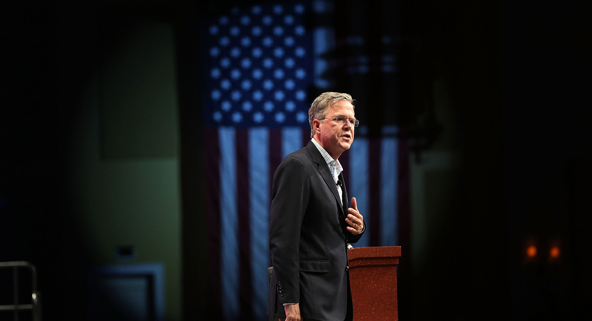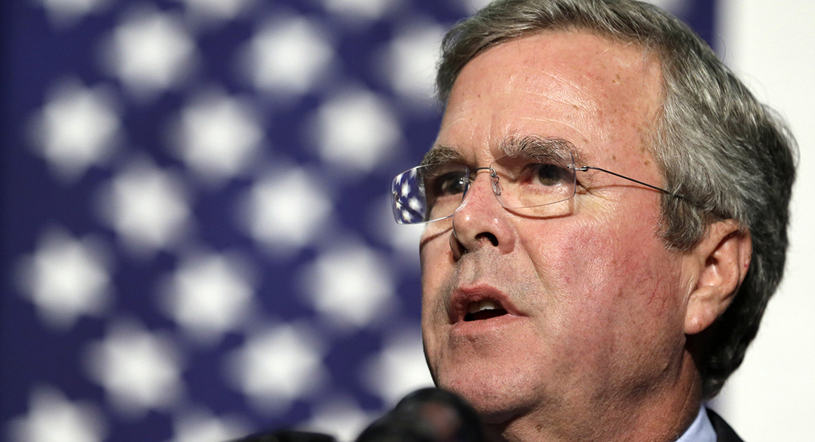 The former Florida governor is staking claim as the candidate most ready to take it to Islamic State. But his last name is a liability.