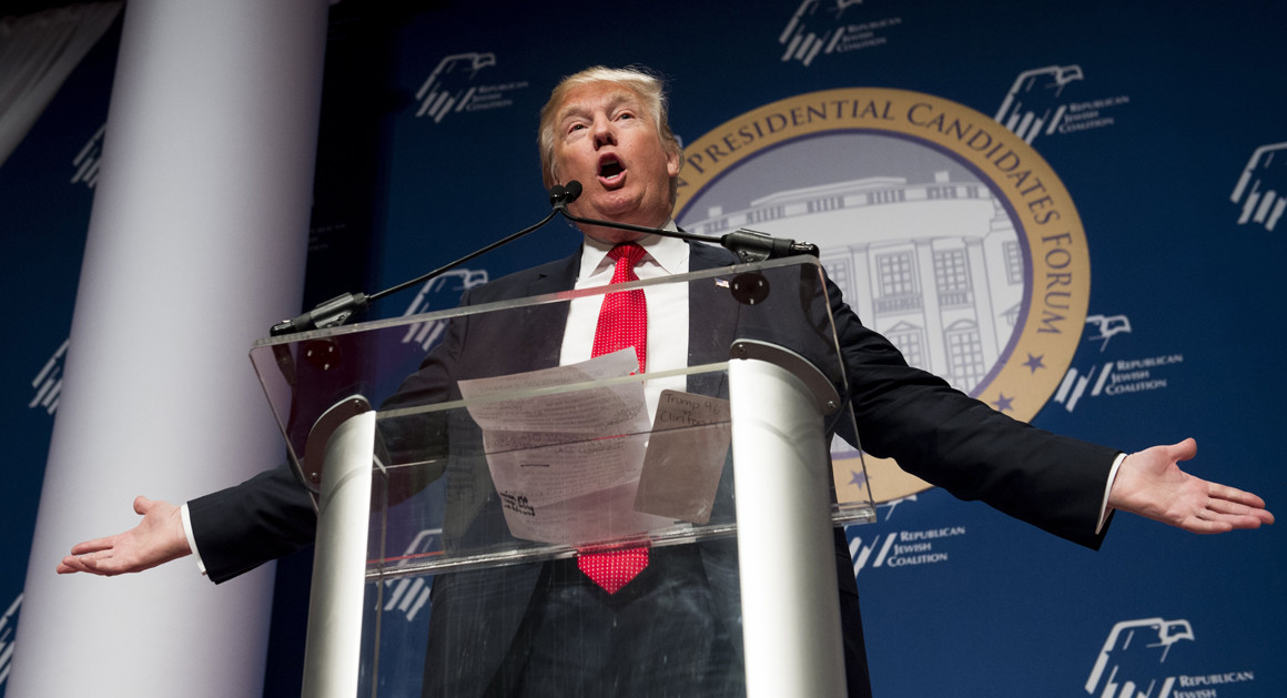 Donald Trump joked about Jewish stereotypes, declined to affirm his support for a united Jerusalem, and told his audience they wouldn’t back him because he did not want their money.