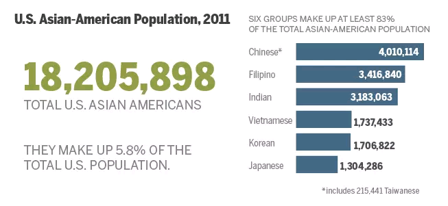 亚裔是美国收入最高,受教育最好,人口发展最快的族裔,而华人是亚裔中人口最多的一个群体,占全部亚裔的23%,在美国属于模范一族。据桥报网报道,皮尤研究中心近期公布了在美华人的一些数据,从人口,教育,收入,党派倾向,家庭观念,婚姻倾向,幸福感等方面,对亚裔,华裔和美国总体人口的状况做了对比。目前在美国的三亿人口中,1800万是亚裔,其中401万是华人。能让人们更清晰地了解华人在美国的现状。