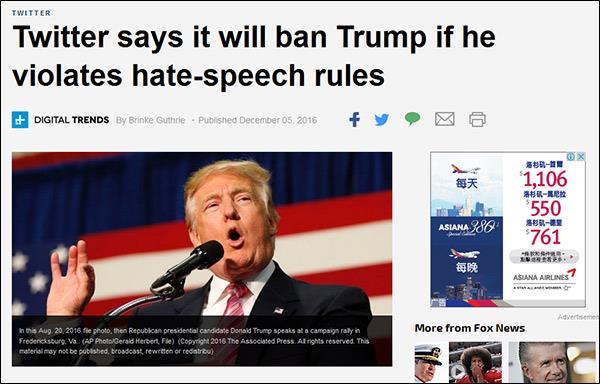 福克斯新闻网此前报道,推特称若继续散步仇恨言论,将封停特朗普账号 探讨封禁特朗普的问题,或许使我们注意到了关于推特本身的一个更重要的问题:反思推特到底希望成为怎样一个平台。 “特朗普时代”给了推特一个做得更好的机会,使其创制一套明确的管理和执行规范。除制度性的文件外,推特还可以创设一套技术系统,使被骚扰者得以举报自己遇到的问题。