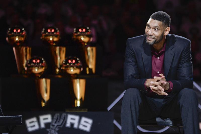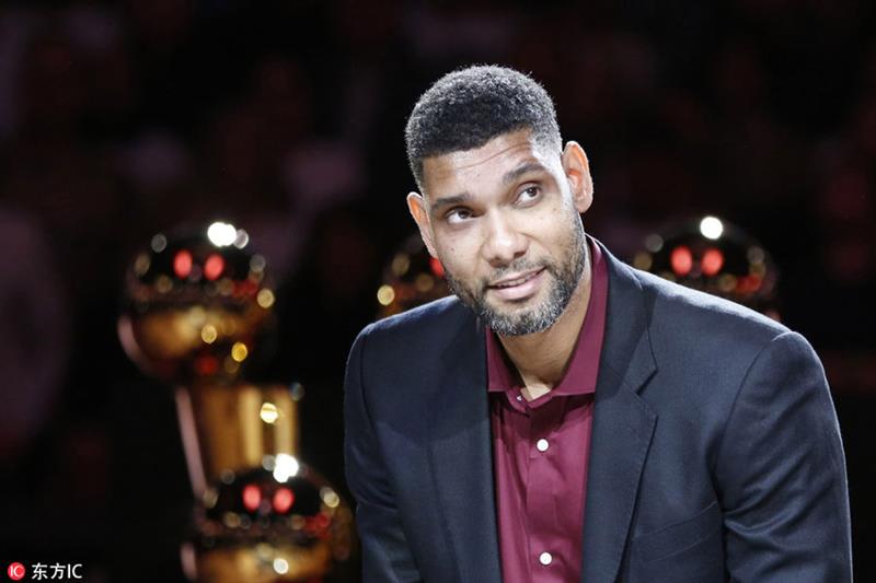 San Antonio Spurs' Tim Duncan listens while special guests speak about him during his jersey retirement ceremony, Dec 18, 2016, in San Antonio, US. Duncan, who spent all of his 19 NBA seasons with the Spurs, won five championships for the team and posted a 1,072-438 regular season record, giving the team a 71 percent win rate, which is both the best 19-year stretch in NBA history, and in all of the four major American sports leagues (NBA, NFL, NHL and MLB) over that same period. Duncan, the 1998 Rookie of the Year, won five NBA titles, two NBA MVP titles (2002, 2003) and three NBA Finals MVP titles (1999, 2003 and 2005). Over the course of his NBA career, the 15-time all-star appeared in a total of 1,392 games and averaged 19.0 points, 10.8 rebounds, 3.0 assists and 2.17 blocks in 34 minutes.