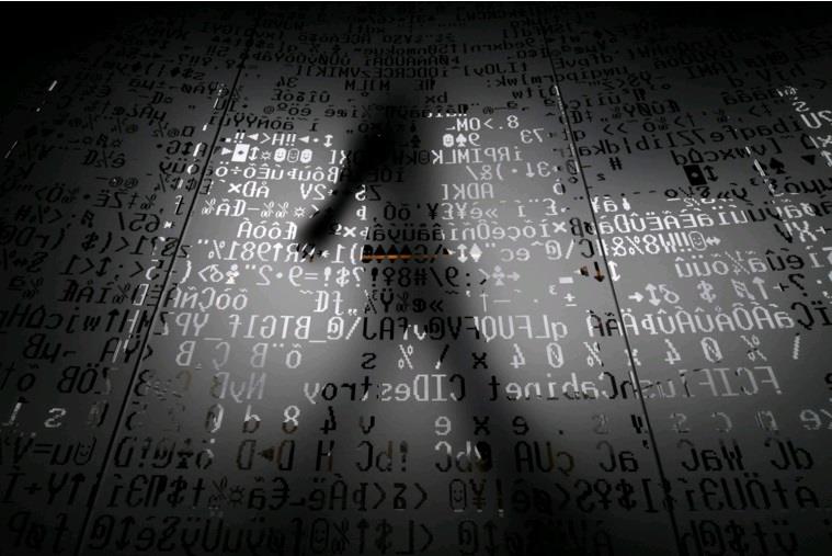 A picture taken on Oct. 17, 2016, shows an employee walking behind a glass wall with machine coding symbols at the headquarters of Internet security giant Kaspersky in Moscow. (KIRILL KUDRYAVTSEV/AFP via Getty Images)