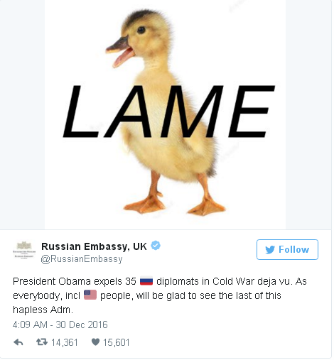 Russian President Vladimir Putin meets with his US counterpart Barack Obama on the sidelines of the G20 Leaders Summit in Hangzhou on September 5. Russia's reaction Russia swiftly responded to the actions Thursday. Russia will respond to any "hostile steps" that the US may take in response to allegations of hacking during the 2016 election, according to theofficial representative for the ministry. Russian Foreign Ministry spokeswoman Maria Zakharova said similar steps will be taken in response to the expulsions, though she did not immediately provide further details. Dmitri Peskov, a spokesman for Russian President Vladimir Putin, told reporters there is "no alternative to reciprocal measures," adding that Putin is "in no rush to make a decision." Russia's first visible action came later Thursday, when Russian authorities ordered the closure of the Anglo-American School of Moscow, a US official briefed on the matter said. The order from the Russian government closes the school, which serves children of US, British and Canadian embassy personnel, to US and foreign nationals. The order also closes access to the US embassy vacation house in Serebryany Bor, near Moscow. Soon after the administration's announcement, Russia's embassy in the UK tweeted that Obama's actions were "Cold War deja vu" and described the administration as "hapless."