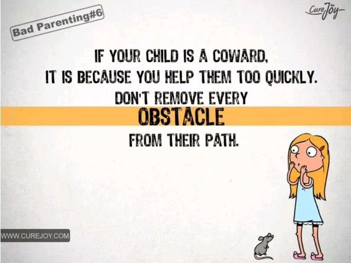 如果你的孩子很懦弱,那其实是因为你帮助他们的速度太快了。不要帮你的孩子清扫他们成长道路上的每一个障碍。
