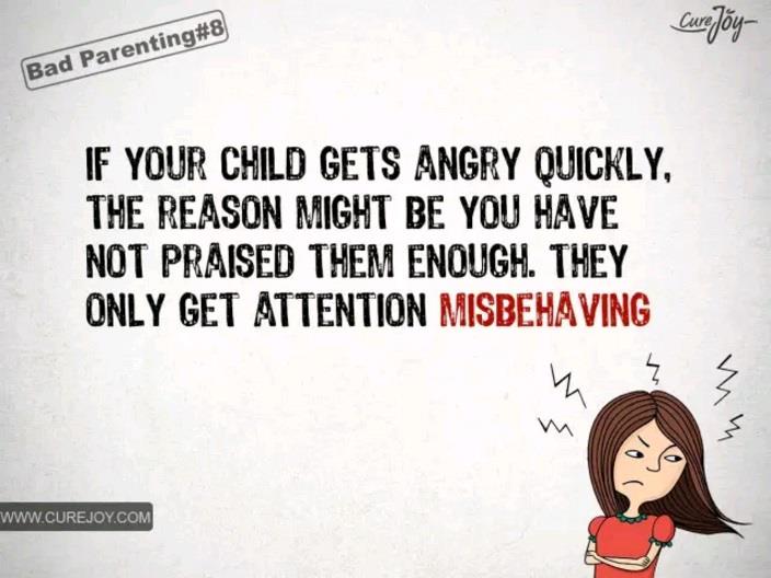 如果你的孩子很容易生气,那其实是因为你给了他们的赞扬不够,他们只有行为不当的时候才能得到注意。
