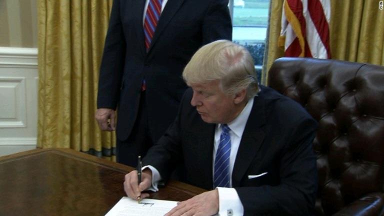 Washington (CNN)President Donald Trump on Monday will start to unravel the behemoth trade deal he inherited from his predecessor, as he signed an executive action to withdraw from the negotiating process of the Trans-Pacific Partnership. That executive action sends signals to Democrats and leaders in foreign capitals around the world that Trump's rhetoric on trade during the campaign is turning into action. Trump vowed during the campaign to withdraw the US from the Pacific trade deal, commonly known as TPP, which he argued was harmful to American workers and manufacturing. The TPP was negotiated under former President Barack Obama, but never ratified by Congress, so withdrawing from it will not have an immediate, real effect on US economic policies, although it does signal a new and very different US outlook on trade under Trump. Trump's action comes as the President is looking to change the conversation after a rocky first weekend at the White House, during which, he and his officials feuded with the press and his presidency was greeted with massive protests in the nation's capital and in large cities across the US. The executive action was just one part of the Trump administration's efforts to focus attention on its plans to radically reshape US trade policies, making good on a central premise of Trump's campaign and its economic nationalist underbelly. Trump on Monday also met with union leaders and blue-collar workers several hours after signing the executive action and had a separate meeting with business leaders. As the Republican nominee, Trump railed against free trade agreements he argued were lopsided against the US and vowed to implement more protectionist trade policies as president, rallying voters to the polls with his "America First" slogan. Trump has also threatened to impose trade tariffs as a way to revive American manufacturing and compel US companies not to take their manufacturing operations abroad. Obama's administration worked with the 11 countries that became signatories for more than two years to formulate the massive free trade deal that was set to reshape commerce throughout the Pacific Rim, triggering movement among multinational companies in the region at the same time. Trump's election swiftly dealt a death knell -- one formalized on Monday -- to the deal, sending shockwaves in Asian capitals that had pinned their economic hopes on the deal. Trump's decision to withdraw the US from TPP is also a first step in the administration's efforts to amass a governing coalition to push the new President's agenda, one that includes the blue-collar workers who defected from Democrats and flocked to Trump's candidacy in November. The move could also put many Democrats -- particularly those who opposed the trade deal -- in a tricky position as they look to hold on to union support, a key constituency in their political coalition. Obama struggled to sell many Democrats on the trade deal, in particular because of concerns about how the trade deal would impact American manufacturers and the US workers in that industry. Even Hillary Clinton, the Democratic presidential nominee who pushed the TPP deal as secretary of state, backed off her support for the deal during the campaign amid pressure from the left. Democrats with heavy union worker constituencies will either need to get on board with Trump's protectionist trade policies or risk losing reelection. Republican leaders, many of whom supported the TPP trade deal and free trade more broadly, will also be pressed to react Monday -- reactions that could show daylight between top Republicans on Capitol Hill and the White House on a top policy issue. Trump has said that he also plans to renegotiate the North American Free Trade Agreement, a free trade deal joining the US, Mexico and Canada.