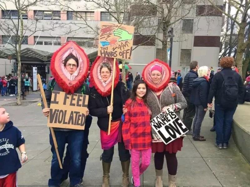 他们就是我们,我们就是她们 你看,怕有两种:一种是理性的,一种是无理性的。一种恐惧是基于现实的真实发生而带来的真实感受,这是我们应该一起解决的问题,宪法说每个人都有追求幸福的权力,罗斯福总统提出过著名的四大自由:言论的自由、信仰的自由、安居乐业的自由和——///免于恐惧的自由,所以,我们一起把社会变成一个让女性更加放心的环境,也许是很有意义的善事///?另一种恐惧则是杯弓蛇影,先入为主地把一个穆斯林等于所有的穆斯林、把所有的穆斯林等于激进恐怖分子,然后自己把自己吓得不轻。 在女性大游行的队伍里出现了包国旗头巾的大幅肖像,就把一些人吓得不轻,还这样解读说:“ 可能想表达好几个意思:(1)美国女性应该和穆斯林女性那样戴头巾。(2)穆斯林女性也爱美国。(3)美国应该朝着穆斯林社会的方向发展。 ”通过上面的分析可以知道,这几条里,只有第二条是对的。其实,该肖像的设计者、著名的街头艺术家Shepard Fairey一共制作了一套三幅招贴,题目是《We The People》,分别来自三个最被歧视偏见所困扰的社群,也正是很多华人不喜欢的三类人:黑、墨、穆。这套招贴画体现的主旨是认同感和平等平权的精神,应当使用的人称代词是“我们”,而不是体现隔阂的“你们”和漠不关心的“他们”。 实际在肖像下面还有副标题,着重突出各个社群所面临的歧见困扰。对于穆斯林,副标题是“我们比恐惧更强大”;对于黑人,副标题是“我们互相保护对方”;对于西裔,副标题是“我们一起维护人格尊严”。这些标题都说得恰到好处,读者您一定也心里有数。黑人受到的警方滥用暴力及量刑不公,西裔受到的鄙夷和人格羞辱,都是活生生的事实。上面引文的作者一方面单独挑选穆斯林肖像,是否故意挑拨矛盾?同时又对标语的诉求视而不见,曲解艺术家的本意。有选择的事实、半真半假的事实,比直接说谎更加隐蔽和可恶。 除此之外,艺术家还设计了另外两张招贴作为补充,分别顾及土著居民的权益和无证移民的居留权。你的反对名单除了“黑墨穆”,还要再加上“土”和“非”吗?你知道也许我们自己也正在别人的名单上吗?只要你不是社会最顶层的那些优越人群,你就有被列入某个名单的可能性。女权主义绝不只是女性如何,女权的诉求是撕碎所有的歧视名单,保障每一个人的平等权利,包括每一个男人,每一个黑墨穆土非,每一个LGBTQ2SI,每一个眼耳鼻舌体脑残障,请跟我念:///女权即人权,女权即人权,女权即人权///,重要的事情说三遍。 不管黑猫白猫,都不是想抓就抓 有一个词被污名太久了,人人都以为它是骂人的话,但是世界上51%的人都有它,另外49%的人却以为自己有权管它。他们一方面朝思暮想,肯定它是一种至高的乐趣、并且用它来评价它的拥有者,另一方面却又把各种脏水倒给它。世界上最强盗逻辑的事情之一,就是抓的人没事,被抓的人却倒了霉。 没有一个女人不想为自己神圣的身体正名,谁愿意它成为羞辱性的词汇?记得川普与希拉里第三次辩论会的情景吗?也就是“抓她Pussy”的“更衣室谈话”曝光之后,Melania Trump身穿一件粉红色的“Pussy Bow”(蝴蝶结)出现在亿万观众的面前,以特殊的方式表达她的抗议:连她也被这样话所冒犯,要表达自己的态度。不妨可以说,Melania是百万女性游行的“Pussy Hat”(粉红小帽)的始作俑者。女性穿着“Pussy”设计,是为了把这个词夺回来,给它正名。 这个争夺话语权的斗争有几个要点。(一)///所谓“更衣室谈话”就是淡化性骚扰的严重性,把不正常变为正常///,所谓“男人都那样”是对男性的不实指摘,而且剥夺了女性的叙事权,完全忽略女性的主观感受和故事经历;(二)遗憾的是,在某些人眼里可能女人的价值就是花瓶,///女人成了行走的性器官///,所以有些女性把自己装扮成女阴的样子,这个行为艺术一方面是为了Pussy代言,一方面也是为了让那些人直面自己的心理投射,从而有所反省;(三)///身体是无罪的,肮脏的是人的思想///,对女性性器官的贬损污蔑是自古以来男权社会遗留的恶习,女人曾经被认为神圣的、神秘的地方,被强行规定为肮脏的、邪恶的,如果男人从不认为自己的下体肮脏邪恶,又有什么理由认为女人呢?(四)女人的///身体属于自己,想做什么由自己决定///,凭什么男人连自己的下体都管不好,却管起别人的下体、甚至胸部和大腿来了?这包括什么可以露,什么必须藏,什么可以放进去,什么可以拿出来,什么又死活不准拿出来……总之,你看的那些所谓“限制级”,是一些严谨的控诉。“Pussy Grabs Back”的含义是,一直被压抑、被污名、被侵犯的“猫猫”,要为了自己的权利反抗!那些头戴粉红帽的男士,正是表达了自己最可贵的支持。所以我们可以乐观地说,这次大游行开启了男性反击男权思维的历史性新阶段。 上次刊登过一块精工细作的标语牌,这块牌子上涉及了女性斗争的历史,就是许多女性和男性引以为豪的“F-word”——女权主义(Feminism)。女权运动已经进行过三波了,第一波是投票权和工作权的争取,第二波提出了性别的社会塑造、对“第二性”提出了质疑,第三波则涉及了人的多样性、平等性,反对以貌取人、反对种族差异,女权运动已经扩展到了惠及每一个人,实实在在已经成为人道主义运动。