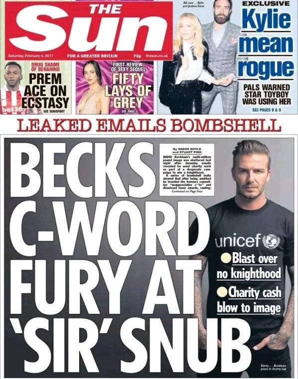 后来,根据英国媒体的报道,小贝这次的”邮件门“之所以会被曝光,其实是因为他拒绝支付给黑客100万欧元的敲诈费用。 而至于小贝最后没有被封爵的原因,据英国镜报的报道,原因是因为他偷漏税... 当时小贝通过投资电影投资公司 Ingenious Media,利用这种方法避税。但这件事后来被英国税务海关总署视为逃漏税。对方当时低调的发了邮件给他,希望他能把这事解决一下,把税交了。 再后来,这事被爵士评选委员会知道了,他们又发邮件给他,想他把这事解决掉。后来小贝知道这事影响到了自己封爵,才恼羞成怒。 其实, 在此之前,小贝一家在英媒的报道中一向都是非常正面的。先说小贝,在足坛的成就不用多说,各种荣誉和奖项拿到手软。