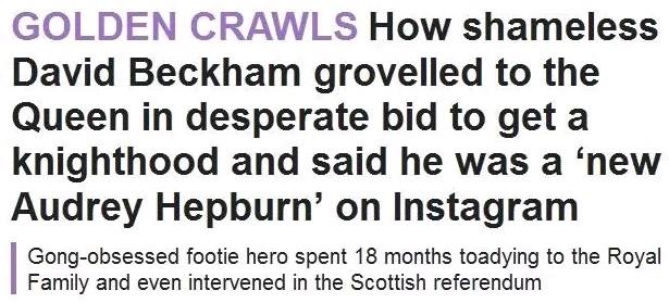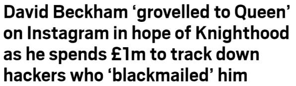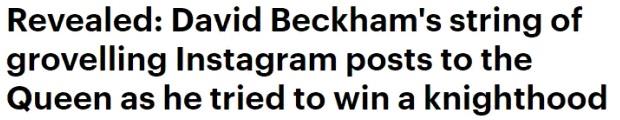 无论是运动品牌,还是科技产品,各种商业代言,他都能驾驭... 除了代言,他和贝嫂维多利亚都积极发展自己的事业,参与各种投资项目,钱越滚越多。 除了事业上的成功,他们一家几口出门的照片经常也会被拍到,而媒体的报道也非常正面,完全就是模范家庭的赶脚... 而在这次的邮件门之后,这些媒体突然一下就变了脸孔,态度180度改变,纷纷开始攻击他... 例如,每日邮报翻出了当时他在封爵候选期间在ins上发的一系列赞扬女王的帖子,说他为了得到爵位,拍女王的马屁拍个不停...