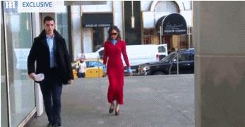 而远在纽约的贝嫂,被拍到穿着自家品牌的衣服走路....这姿势...像在走秀...