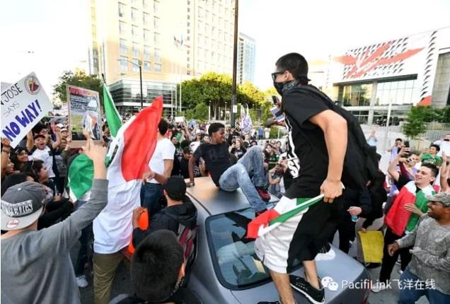 2016年6月2号,川普去加州圣何塞拉力,抗议者跃跃欲试。圣何塞严阵以待,但是民主党市长下令警察别动。结果挥舞着墨西哥国旗的暴民围攻川普支持者,全副武装的防暴警察在旁边站着不动。