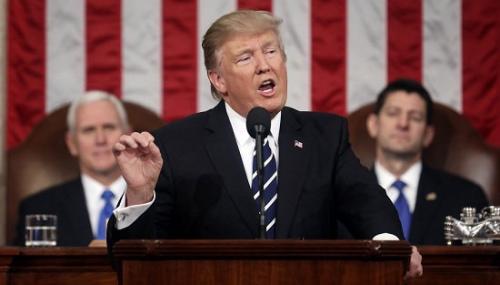 当地时间2月28日 美国总统特朗普在国会讲话 2月28日的这次黄金时段演讲除了是特朗普的国会“首秀”,也是他的首场面向全国的正式讲话。一开场,他就提出了演讲的主题——恢复美国精神。 特朗普称,长期以来,美国一直在工作岗位和财富输送至海外,国内的中产阶却在萎缩。美国维护别国边界,却让本国边界大开,使得不法之徒乘虚而入。而在基础建设方面,数万亿美元被花在国外,国内的基础建设却破败不堪。 特朗普表示,他不会让这些“近几十年来的错误”定义美国的未来,未来要“以美国公民优先”,从而实现他的竞选承诺,“让美国再次强大”。 “成绩单”和承诺 演讲中,特朗普向国会汇报了一个多月来他在重振美国经济上取得的成果。国内经济方面,特朗普称,他上任以来,多家跨国企业已经宣布在美国的大笔投资计划,这些投资为美国新增数万个工作岗位,美股市值上涨3万亿美元。 他还表示,其经济团队正在发展“历史性的税改”,这将降低公司的税率,从而提供公司竞争力。同时,会为中产阶级大规模减税。此外,他还承诺向国会要求1万亿美元基础建设支出,用于老旧基建整修。 有关国际贸易,特朗普基本重申了他一贯的言论,称信仰“公平的自由贸易”。 他称,在其领导下,美国已经退出“葬送工作机会”的跨太平洋战略经济伙伴协定。他还承诺为美国“带回成百上千万的工作机会”。 此外,特朗普还呼吁国会废除和替代奥巴马医保方案,提供更好的医保方案。 “修墙”和移民改革