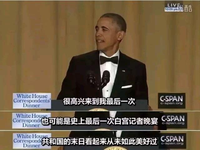 威尔逊时期的白宫记者协会会员合影 之后的百年时间里,历届的美国总统除非疾病等不可抗因素,都会按时参加白宫记者协会晚宴。可以说,这已经是一条不成文的规矩。 这场晚宴在每年的4月29日举办,在晚宴上,总统和副总统都会变身段子手,进行各种自嘲。以往针锋相对的政客和记者,在这场晚宴上也会握手言欢。 纵使背后仍是波涛暗涌,最起码大家会做到表面上的其乐融融,给彼此一个面子。这是修复白宫与媒体关系的一个重要桥梁,记者们会在这场晚宴上感受到总统的幽默与善意。