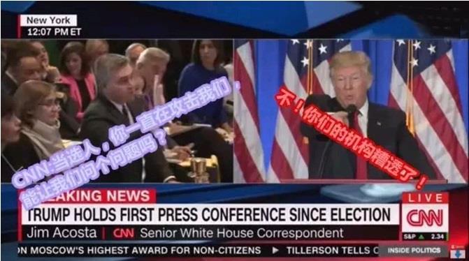 在新闻舆论一面倒地偏向希拉里的情况下,特朗普依然取得了胜利,赢得了选举,成为了新一任的美国总统。因此,回想起大选过程中媒体们所做的手脚,特朗普对媒体的态度难免是嘲讽而轻蔑的。 被媒体欺负了这么久,特朗普当然会进行反击。 早在2017年1月11日,特朗普就在自己当选总统后的首场记者会上怒斥CNN制造假新闻,并和记者当面争执,场面十分紧张。2月16日,特朗普正式上任的第一场媒体发布会,他滔滔不绝地批评了美国媒体75分钟。 特朗普曾表示:“这些假新闻媒体不是我的敌人,是美国人民的敌人。”