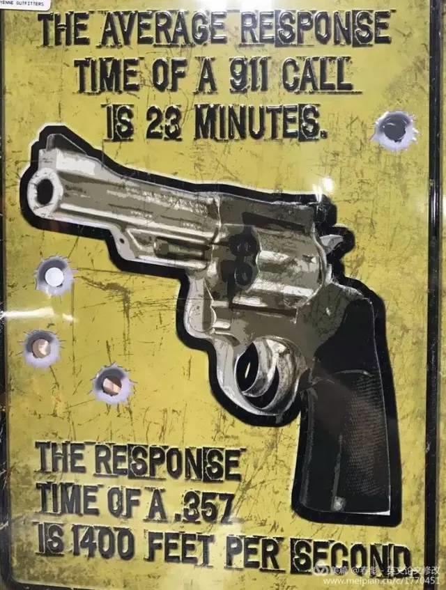 2015 年 7 月 13 日,休斯敦一家便利商店遭四名持枪非洲裔男子入店抢劫,其中二名歹待遭华裔店员开枪击毙。 2016 年 9 月 24 日夜,乔治亚州华裔女子陈凤珠持枪击退三名武装入室盗窃者,并射杀其中的一名歹徒。 下面这张宣传画很形象 - 紧急时拨打 911 报警,警察能到现场的平均时间是 23 分钟,而一颗左轮手枪子弹的速度是每秒钟 1400 英尺。