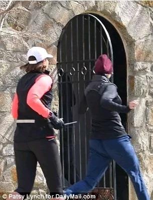 在跑步过程中,女特工全程跟跑。图为女特工手里拿着对讲机护送伊万卡从后门进入。