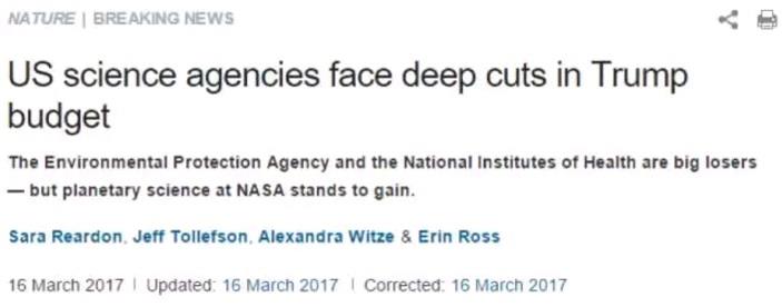 ►《科学》杂志用“可怕的一天”来形容特朗普公布的2018年预算