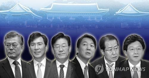 左起依次为文在寅、安熙正、李在明、安哲秀、洪准杓、刘承旻 在好感度方面,受访者对安熙正的好感度为56%,领先于其他候选人,其后依次为文在寅(47%)、李在明(39%)、安哲秀(38%)、黄教安(24%)等。 在政党支持率方面,共同民主党的支持率为46%,刷新创党以来最高纪录。国民之党和自由韩国党(原新世界党)各为12.0%,共同位列第二。正义党为5.0%,正党为4.0%,分别位列第三和第四。
