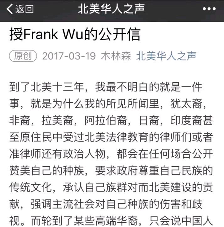 文章一出,微信上群情激愤,口诛笔伐。一天之后,之声的主编谢文鸿亲自出马,写了一篇文章痛斥Frank Wu,并提到了同一段话。