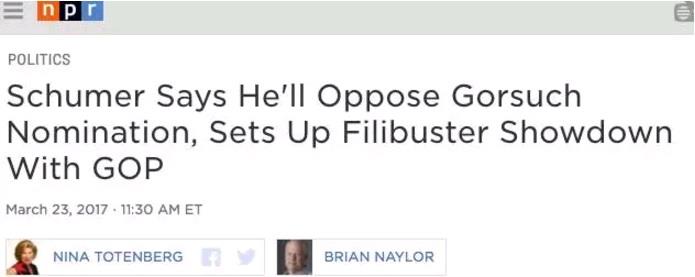 戈萨奇大法官提名将面临民主党“费力把事拖”(Filibuster)