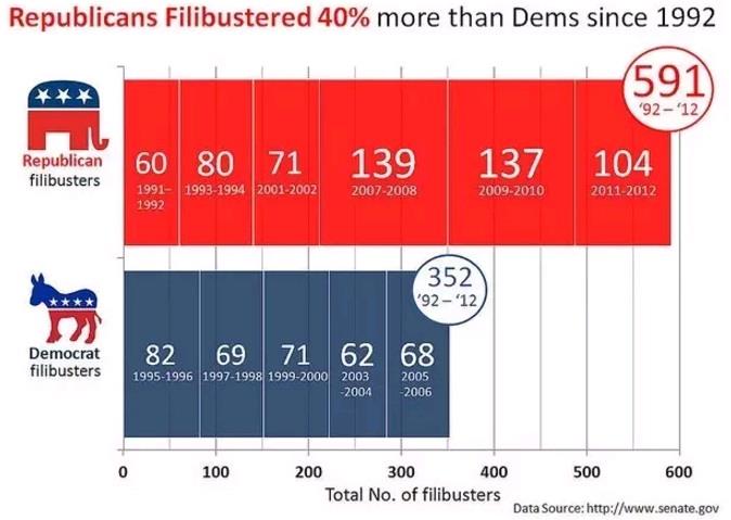 好了,这里我们假设50个共和党籍参议员出席并耐着性子听舒默唠一天一夜嗑,好不容易熬完了,可以投票了吧,不!桑德斯又发声要冗长辩论了,舒默说了我讲完了可以回家睡觉了,你们共和党继续听桑德斯吧(说明一下桑德斯可没有出席舒默的冗长辩论所以精神头是足足的),当然共和党也可以回家休息,但是人家桑德斯的冗长辩论就得择日了,反正也是拖。 说到这,读者明白了吧,桑德斯讲完还有伊丽莎白·瓦伦,之后还有布鲁克尔,还有梅南德斯,一个一个数下去可是没玩没了啊,反正拖死为止,到了2018搞不好民主党又成了多数派了。