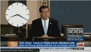 (泰德·克鲁兹 2013年反对奥巴马健保法案时长达超过21小时的发言) 在联邦参议院历史上个人时间最长的冗长辩论是南卡的议员斯特罗姆·瑟蒙德在1957年为阻扰人权法案创造的24小时18分,不过斯特罗姆·瑟蒙德后来也因为人权法的通过转投了共和党。冗长辩论这几年也越演越烈,最近一次长时间超过21个小时的是2013年德州的泰德·克鲁兹,当时他反对的是奥巴马总统的全民保健提案。 冗长辩论的另外一个特点就是它并没有要求发言的内容,所以议员可以在上面讲任何想说的东西,哪怕跟题目毫不相干,有的朗读美国宪法,有的读独立宣言,读人权法案,甚至还有读食谱的。哪天要是听到毛主席语录也不奇怪。