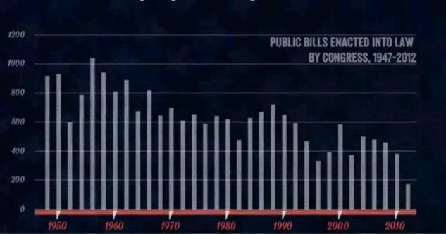 1947年到2012年期间国会法案通过成为法律的走势图 在奥巴马政府期间由于共和党使用冗长辩论来阻挡白宫的任命的数量达到了历史总和的一半,民主党参议院不得不启用宪法选择(constitutional option)也叫原子弹选择(nuclear option),把原本需要60票才能结束的冗长辩论改为了51票,不过这一改变只针对行政机构和地区法官的任命,并不适用于立法和联邦大法官任命。原子弹选择最初是被前总统理查德·尼克松 (Richard Nixon) 提出来的 ,当时还是参议院院长的尼克松认为宪法条文没有对参议院修改规则的票数做出规定,所有修改规则只需要过半数就行了,而且宪法也有条文明确规定参议院必须对行政任命进行投票,所以原子弹选择在官员任命上也就成立了。由于考虑到原子弹选择是一种自杀式的选择,会影响参议院的分量而且无形中又扩大了总统的权力,所以大部分的参议员并不支持,就像川普前段时间威胁在联邦大法官任命上会使用原子弹选择,而立即遭到共和党籍参议院领袖米奇·麦考林的警告一样。2017年2月5日麦考林在CNN表示,如果民主党在川普的大法官提名上使用冗长辩论,他有信心拿到60票,但他并没有对不会使用原子弹选择作出明确的回答。 冗长辩论并不能使用在美国众议院,但众议员们也有同样一些手段用于阻扰会议进程,比如在 “一致同意”(unanimous consent)的条款下众议员就可以对会议记录有异议的理由来拖延投票,当然相对冗长辩论来说用这种方法拖延的时间相当有限,所以效果就差远了。 2017年川普上台,他的一系列行政命令引起了很大争议,其中争议最大的两版禁穆令在联邦法院受阻,这一消息无疑使得民主党信心大增,就目前的情况来看冗长辩论肯定会成为民主党的武器之一。虽然很多批评认为冗长辩论耗费社会成本,妨碍施政,造成政府效率低下等,但是更多的支持者则认为冗长辩论有助于少数派的代表彰显立场,避免被多数派欺负的情况,而且可以避免总统独裁的威胁。