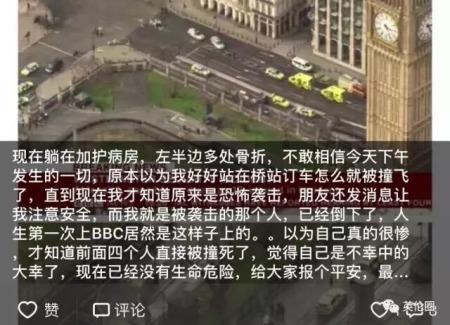 据《欧洲时报》英国版报道,22日英国伦敦发生恐袭,至少40人受伤,其中包括一名中国公民。中国驻英使馆领事部召开记者会确认,这是一位20多岁的女性游客,目前在医院接受救治。 在采访中记者得知,22日伦敦议会恐怖袭击案发生后,中国大使馆第一时间启动应急机制,与警方、反恐局和医院取得联系,求证是否有中国公民伤亡信息,但是都被告知没有确切与中国公民相关的信息。 当晚9点,使馆通过多方渠道了解到可能有一名20多岁的中国女性受伤,但英国警方和议员均不愿透露伤者信息。直到23日零晨1点左右,伤者的父亲通过领保电话联系到中国驻英使馆,求助使馆协助他和伤者的母亲办理英国签证,尽快赴英探望,并请求使馆代为探望伤情,此时使馆才掌握到伤者的具体身份信息,与英国警方核实后,确认她的身份。 为海外中国公民提供更可靠的安全保障,并不是一件简单的事。这需要国家有强大的政治影响力、综合威慑力以及更多的海外安保手段,也需要海外中国公民提高自我防护能力,与各项安全措施正确互动。
