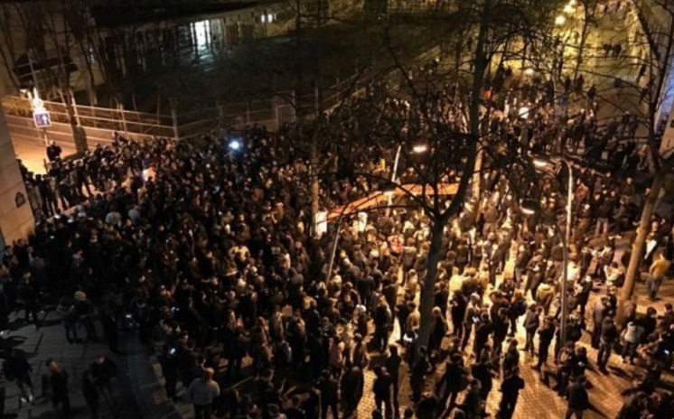 当地时间2017年3月28日,法国巴黎,亚裔群体在巴黎19区警察局外集会抗议。据悉,当地时间26日晚,一名旅法华侨在巴黎家中被法国便衣警察开枪射杀,事后,部分示威者前往警局抗议,与警方发生冲突,当局称35名示威者被逮捕,3名警察受伤。