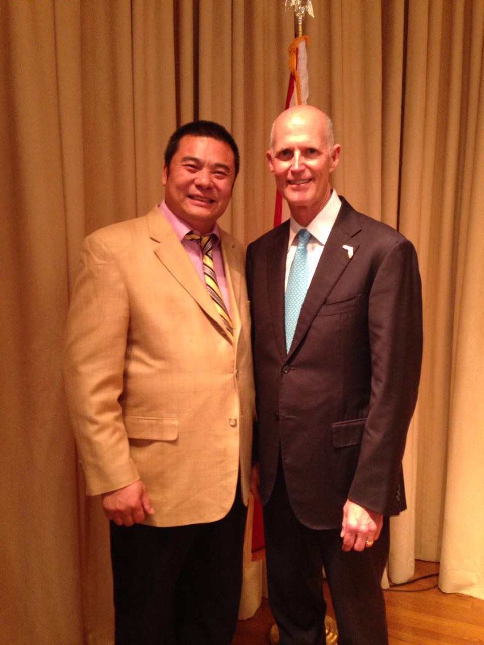 Florida Governor Rick Scott (right); Qichun Lin(left)