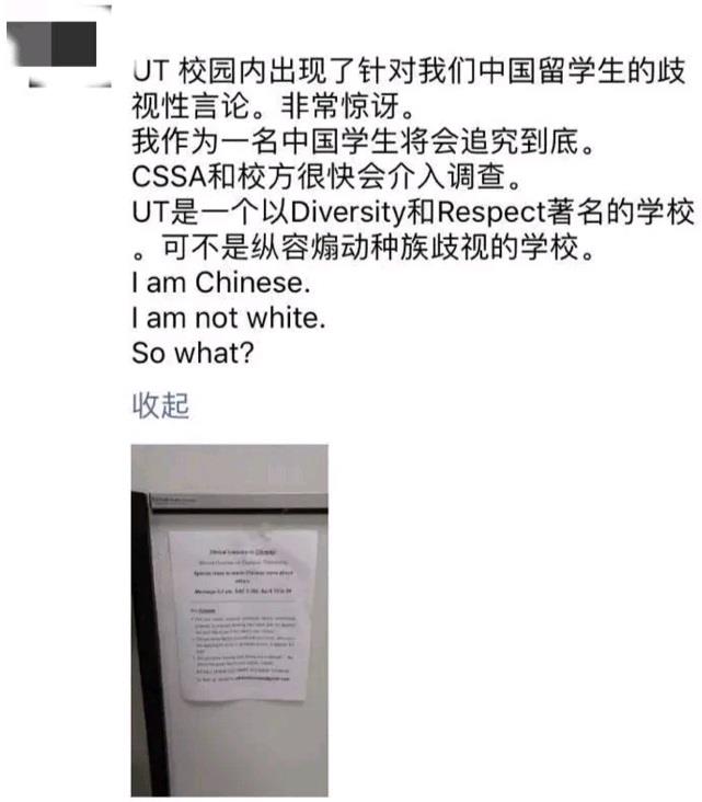 不少华人学生都对此感到愤怒,并向校方投诉。3日,UTCSSA通报了多方交涉的最新进展。