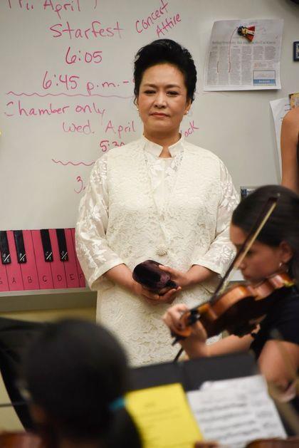 彭丽媛观看学生乐队演奏