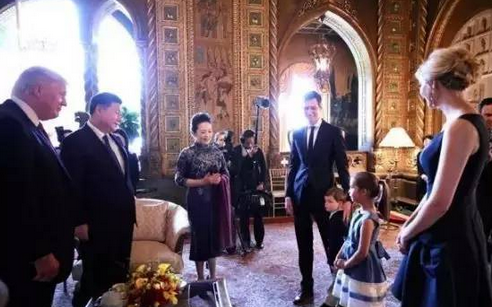 (图片来源:美联社) 而前一天下午2点左右,习近平与夫人彭丽媛抵达佛州棕榈滩机场,并在下午5点半左右抵达佛州海湖庄园,总统川普与第一夫人梅拉尼娅迎接,两国元首夫妇合影留念,相互交谈。两国元首夫妇共同欣赏了川普外孙女和外孙演唱中文歌曲《茉莉花》并背诵《三字经》和唐诗。川普还愉快接受了习近平发出的访华邀请,并期待尽快成行。