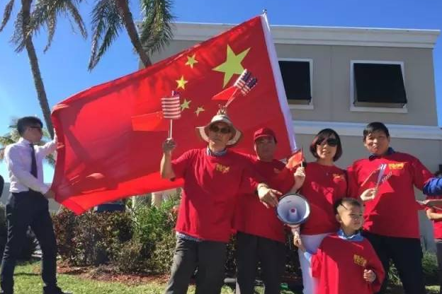 据悉,贝克艺术中学涵盖六个艺术领域,包括美术、乐器、歌唱等等。而且该校进校门槛很高,学生申请的时候需要进行试镜(audition),通过之后,还要进行抽签(lottery),经过这些才能进校念书。 数千华人从昨天清早开始就从各处出发,欢迎习近平和夫人彭丽媛的到来今天,热情的华人们同样一早就在Eau Palm Beach Resort & Spa酒店门口等候,欢送习近平夫妇。