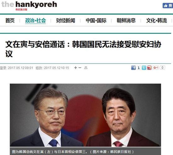 5月11日,日本首相安倍晋三向韩国新一任总统文在寅打祝贺电话。双方之间的通话从当天下午3时35分开始,持续了约25分钟。韩国《韩民族日报》5月12日报道称,在谈到此前韩日之间就慰安妇问题达成的协议时,文在寅表示“大部分韩国国民在情绪上无法接受这项协议(慰安妇协议),是需要面对的现实。”分析称,韩国将不可避免考虑国民要求而加以修正该协议。 青瓦台宣传首席秘书官尹英灿(音)表示,两国首脑之间的通话从当天下午3时35分开始,持续了25分钟,是日本首相安倍晋三打来的祝贺电话。 日本首相安倍晋三当天在通话中就前年的慰安妇协议问题再次重申期望切实履行协议,以构建面向未来的日韩关系的基本立场。 尹英灿首席秘书官表示,对此文在寅总统强调“共同努力”,称“大部分韩国国民在情绪上无法接受这项协议(慰安妇协议),是需要面对的现实。承认这种国民情绪和现实,需要双方共同努力”。同时还称“为应对朝鲜核导以及发展两国面向未来的关系,我认为有必要与其(慰安妇协议问题)分开,齐头并进。” 据分析,文在寅虽未明确提到重新商讨引起草率屈从争议和韩国国民公愤的“12.28慰安妇协议”,但将不可避免考虑国民要求而加以修正。 但日本NHK等媒体报道称,安倍晋三首相对日韩“慰安妇”问题协议强调表示,“负责和履行很重要”。 韩媒报道称,预计韩日两国围绕慰安妇协议重新协商的争议将会持续。