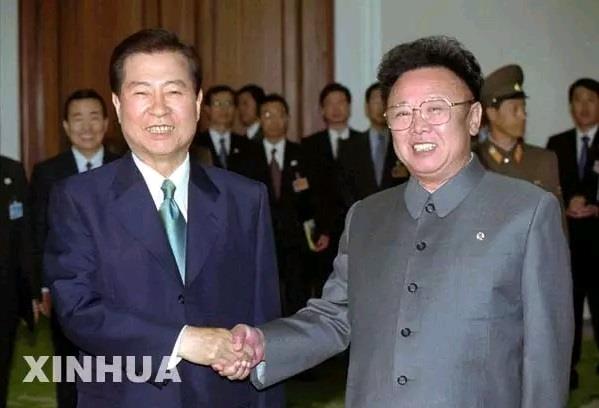 金大中与金正日 卢武铉总统对北韩实行的“和平繁荣政策”则是“阳光政策”的2.0版。卢总统曾步行穿越“三八线”,以示对北韩和平的诚意。又是建开城工业园区,又是连接南北方的铁路和公路,援助北韩的钱一部分是无息贷款,更多的钱的则是无偿赠与,还有大量的粮食援助。