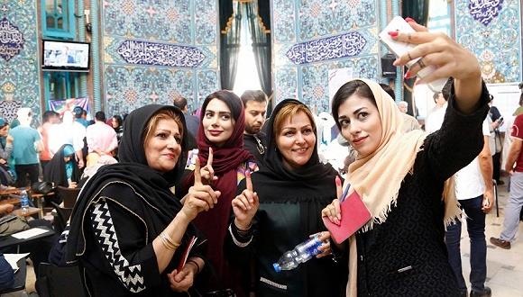 2017年5月19日,伊朗德黑兰一处投票站,选民在选出心中的总统后自拍留念。 据伊朗媒体5月20日报道,现任总统鲁哈尼在伊朗第12届总统选举中暂时领先。 据伊朗新闻电视台报道,在已统计的约2510万张有效选票中,鲁哈尼得票数为1461.9万,暂时领先,宗教人士莱希获1012.5万张选票,排名第二。两人得票率分别为56.30%和38.99%。此次选举共有逾4000万人参加投票,投票率超过70%。 当地时间19日8时,本届伊朗总统选举投票开始。由于投票人数超出预期,投票截止时间三次更改,从原定的18时延至24时结束。预计选举结果将在20日公布。 本次选举共有1636名伊朗公民登记参选,最终通过伊朗宪法监护委员会资格审查的有鲁哈尼等六名候选人。但由于有两名候选人相继宣布退出竞选,最终只有四名候选人参选。从竞选期开始,此次大选就被视为代表改革派阵营的现任总统鲁哈尼和保守派候选人莱希两人之间的对决。 伊朗总统选举每四年举行一次。总统由选民直接投票选举产生,可连任一届。在选举首轮投票中,获得逾半数选票的候选人将直接赢得选举,否则得票数居前两位的候选人进入第二轮角逐。选举结果公布后,须经宪法监护委员会认可,最终获胜者还须得到最高领袖的任命。
