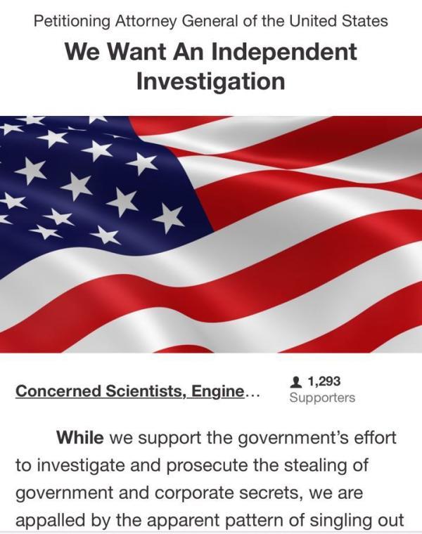 多名美国院士和诺奖获得者为蒙冤华裔科学家请愿