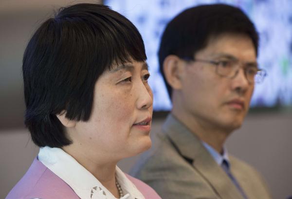 当地时间2015年9月15日,美国华盛顿,曾遭美国司法部不实指控的华裔物理学教授郗小星(右)和联邦部门水文专家陈霞芬(左)在华盛顿表示,虽然针对他们的指控现已撤销,但此事给他们各自的生活和工作造成了巨大伤害。 视觉中国 资料