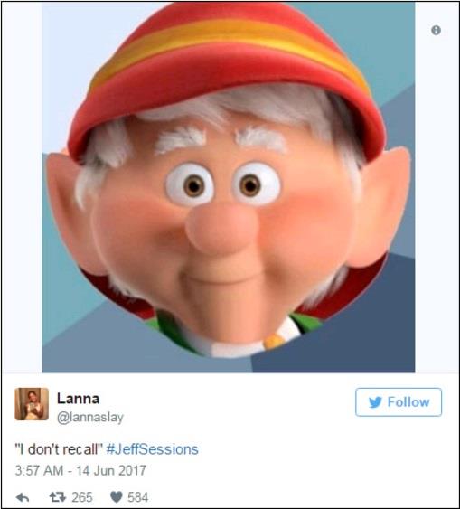 司法部长塞申斯最喜欢说的就是“我不记得了”,“我不记得了”