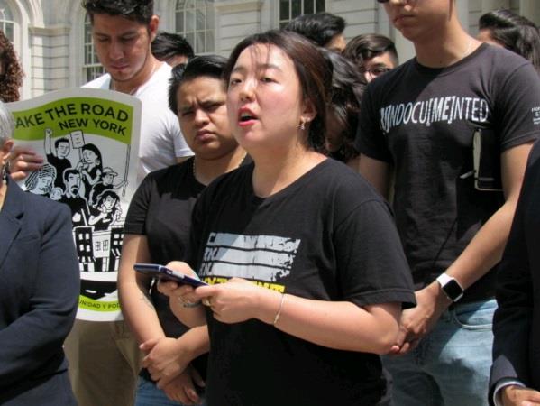 6月15日DACA五周年当天,一群梦想生在纽约市政厅前请愿,呼吁政府继续施行该计划。(本报档案照)