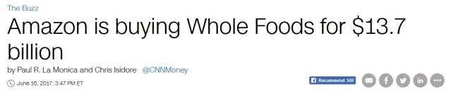 137亿美元!Whole Foods已正式被亚马逊收购,股票涨疯了~