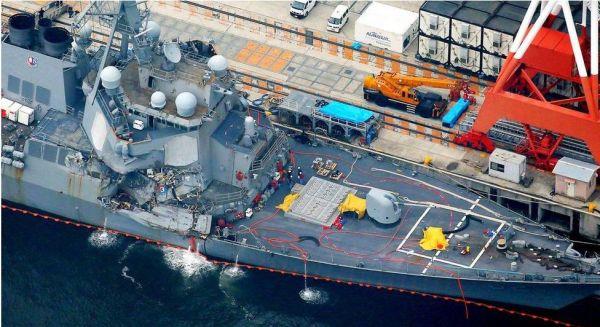 受损的“菲茨杰拉德”号驱逐舰上拉起了多根管线,正进行排水作业。 6月18日,夜幕下天气状况良好,海浪约有6英尺(1英尺约合0.3米)高。在驶入东京湾的航道交汇处附近,美国“菲茨杰拉德”号驱逐舰正在执行例行任务。 “菲茨杰拉德”号驱逐舰是美国海军最先进的军舰之一,这艘“宙斯盾”驱逐舰配有最新式、最先进的雷达设备。舰上有300名船员,在舰桥上,值班人员都在岗位上。事故发生时,大部分水手都在睡觉。指挥官布赖斯·本森在位于军舰右舷的指挥官船舱里。当时是凌晨2点左右。 在下田市附近海域,从名古屋港出发的一艘菲律宾籍“ACX水晶”号货船当时正在向东驶向东京。每天有400艘船经过这片海湾驶向日本第一大港,这片海湾的交通流量、零星散布的岛屿以及岛上的灯光导致极难开展导航工作。在这片海域,不论是白天黑夜,船只都须谨小慎微地遵守既定航行规则并进行相互避让。 而在17日清晨,“水晶”号货船在那条繁忙的航道突然来了个大约180度的大转向,然后沿原路返回,几乎向正西方向驶去,出现这种情况的个中原因目前仍未得到解释。 凌晨2点20分,那艘体积大得多的集装箱货轮撞向“菲茨杰拉德”号驱逐舰舷侧,撞击部位接近右舷中部。那艘货轮给“菲茨杰拉德”号驱逐舰撞出一个大洞,导致水线以下的两个舱和一间机房被撞破,那两个舱共设有116个船员铺位。 据第七舰队司令、海军中将约瑟夫·奥库安介绍,大量海水从巨大的缺口涌入。在卧铺上就寝的船员被汹涌的海水惊醒。 奥库安18日在横须贺海军基地说:“在涌入海水的那些区域,当时的时间可不多了。船员们竭尽全力不让军舰沉没。那是一段令人痛苦难忘的经历。” 当时的情况表明“水晶”号货船对“菲茨杰拉德”号驱逐舰拥有优先通行权,但发生撞船的具体细节尚未完全调查清楚。 日本第3管区海上保安总部(横滨)正在以“业务上过失往来危险”的嫌疑展开调查,向集装箱货轮乘员询问情况。 另据美国《纽约时报》网站6月18日报道称,海军领导人18日热赞幸存海员们的壮举,他们竭尽全力封住船舱并开展抽水作业。 第七舰队司令、海军中将约瑟夫·奥库安说:“他们的壮举没有让涌入的海水出现灾难性的漫灌,否则就会造成军舰下沉或沉没。情况本可能糟糕得多。” 奥库安表示,他将指定一名海军将官展开调查,调查工作将努力确定事发经过并进行追责。他说:“损失惨重,这不是一次轻微的碰撞。” 调查人员的关注焦点将会放在“菲茨杰拉德”号指挥官布赖斯·本森的身上,事发时本森在位于该驱逐舰右舷的特等舱里。现年40岁的本森受了伤,日本海上保安厅派了一架直升机将他及另两名船员空运至横须贺。 奥库安说:“本森所在的船舱严重受损,他能活着非常走运。”本森担任“菲茨杰拉德”号指挥官刚一年有余。 据多位海军老兵称,本森在发生撞船事故时在他的船舱里,这个事实表明事故发生前几乎没有什么前兆。 2004年至2006年在大西洋海域担任某驱逐舰舰长、当前从事国家安全事务咨询工作的布赖恩·麦格拉思说:“发生撞船事故时,你当时睡没睡着都不重要。值班人员为什么没有叫你?他们难道没有接受过正规训练吗?归根结底,这都是你的责任。” 《今日美国报》网站6月18日报道称,海军于18日夜间公布了与一艘集装箱货轮在日本附近海域相撞的“菲茨杰拉德”号上7名死亡水兵的姓名。已在这艘进了水的驱逐舰上找到这些遗体。 一名幸存水兵的母亲米娅·赛克斯对美联社记者说,她儿子多次潜水、试图救出战友。其他水兵以为军舰遭到攻击,都匆忙奔向炮位。 赛克斯说,她19岁的儿子布雷登·哈登对她说,他被撞下铺位。海水立即开始进入舱内。赛克斯说,他儿子说,睡在他上铺和下铺的水兵都已死亡,在上面舱内,也有3人死亡。