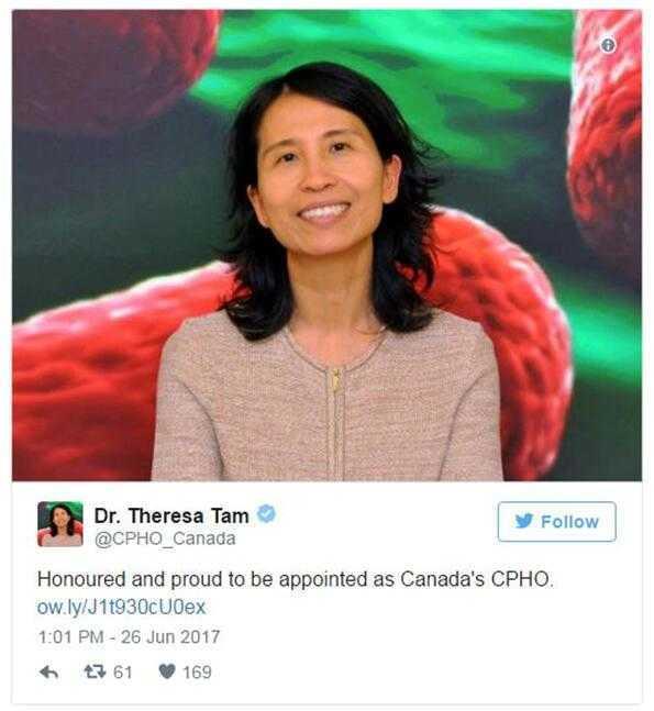据加拿大“超级生活网”6月27日报道,加拿大联邦卫生部27日正式任命谭咏诗(Theresa Tam)为加拿大首席公共卫生官,当日起生效。谭咏诗是加拿大公共卫生局自2004年创办以来的第三任主管,同时也是第一位华裔女主管。 据报道,谭咏诗毕业于英国诺丁汉大学,获医学学士学位。之后,分别在加拿大阿尔伯塔大学和不列颠哥伦比亚大学深造,获得博士学位。她本身是一名儿科传染病专家。除了在加拿大不同省区和联邦层级的卫生部门任职,她曾在世界卫生组织的多个委员会担任专家,执行过多次国际任务。自2016年12月,上一任首席公共卫生官退休以后,谭咏诗便一直兼任这一职位。 报道称,加拿大首席公共卫生官的职责包括:向联邦卫生部提供咨询建议,同各省区的公共卫生部门,以及国际卫生机构和非政府组织联系与合作,以应对和改善公共卫生问题,向公众通报公共卫生关注和风险等。