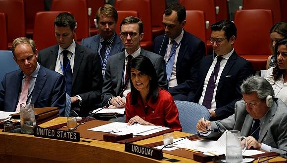 2017年7月5日,美国纽约,美国常驻联合国代表黑莉在紧急会议上发言说,“如有必要”,美国“已准备好动用武力”保卫自己和盟友。 应美国要求,联合国安理会7月5日就朝鲜发射洲际导弹一事召开紧急会议。作为安理会本月轮值主席的中国代表刘结一在会上说,中国始终坚持实现朝鲜半岛无核化目标,坚持维护半岛和平稳定,坚持通过对话协商解决问题,反对半岛生乱生战。军事手段不应成为解决半岛问题的选项。 在朝鲜7月4日试射洲际弹道导弹后,韩国军方与驻韩美军举行联合导弹演练,以表明韩美同盟的导弹防御姿态。据新华社报道,韩国总统文在寅下令举行这次联合演练。演练同时得到美国总统特朗普批准。韩美两军在演练中向朝鲜半岛东部海域发射多枚导弹,实施拦截弹道导弹训练。 联合国负责政治事务的助理秘书长延恰向安理会表示,秘书长古特雷斯强烈谴责朝鲜发射洲际弹道导弹,敦促朝鲜必须停止违反安理会决议的行为,同时所有各方必须重新开放交流渠道。 据联合国微信公众号消息,延恰在向安理会所做的情况通报中指出,根据朝鲜官方媒体的报道和其他正式消息来源,朝鲜4日发射的洲际弹道导弹在39分钟之内飞行了933公里,达到了2802公里的高度。根据这些数据,如果该导弹以一个更为标准的轨迹发射,其射程大约可以达到6700公里。这表明该导弹是一枚洲际弹道导弹。在发射该导弹前,朝鲜依旧没有通知负责空中和海上安全的国际机构。 延恰还表示,朝鲜官方媒体称该国已经是一个全面的核武器国家,拥有可以携带核弹头并击中世界上任何一个地方的最先进的洲际弹道导弹。 延恰指出,朝鲜此举是对安理会相关决议的又一次公然违反,代表着朝鲜半岛局势的危险升级。 延恰强调:“朝鲜必须停止违反安理会决议的行为,允许重新启动真诚对话的空间;所有各方必须重新开放交流渠道,特别是在军事对军事的层面,以降低误判或误解的风险。” 他表示,在安理会考虑其反应之际,秘书处提醒会员国应当将政治和人道主义关切分开的重要性,并敦促各方支持人道主义机构在朝鲜开展的拯救生命的行动。 秘书长古特雷斯此前已于4日发表声明对朝鲜试射弹道导弹予以强烈谴责,并敦促其停止挑衅行为。古特雷斯指出,朝鲜此举再次严重违反了安理会相关决议,导致局势发生危险的升级。朝鲜领导层必须停止进一步挑衅行为,全面遵守国际义务。古特雷斯强调,在应对这一严峻挑战时,国际社会保持团结非常重要。 中国常驻联合国代表刘结一主持了此次会议。据新华社报道,他在发言时说:安理会决议对朝鲜利用弹道导弹技术进行发射活动有明确规定。朝鲜7月4日发射弹道导弹严重违反安理会有关决议,违背国际社会普遍意愿。中方对此不能接受。他说: 我们强烈敦促朝方严格遵守安理会决议,停止任何可能进一步加剧半岛紧张的言行。我们同时呼吁有关各方保持克制,避免挑衅行动和好战言论,体现无条件对话意愿,共同为缓和紧张局势做出积极努力。 中俄元首4日就半岛局势交换了看法,一致认为应通过对话协商方式解决朝鲜半岛核问题。两国外交部就朝鲜半岛问题发表联合声明,体现了中俄双方对半岛问题的共同立场和关切。联合声明以中方“双轨并行”思路和“双暂停”倡议和俄方分步走设想为基础,提出了双方共同倡议。 当前半岛局势复杂敏感,对话进程停滞不前。中俄提出的共同倡议旨在标本兼治,综合施策解决问题。这是客观公正、合情合理、现实可行的方案。我们希望国际社会支持上述倡议,为解决半岛问题开辟现实途径。 实现朝鲜半岛无核化和长治久安符合各方的利益。我们希望有关各方与中方一道,发挥应有的作用,承担起应有的责任,早日把半岛问题重新纳入和平对话的正确轨道。 刘结一同时强调,在东北亚地区部署“萨德”反导系统严重损害包括中国在内的域内国家战略安全利益,无助于实现半岛无核化目标和地区和平稳定。中方敦促有关国家立即停止并取消相关部署。
