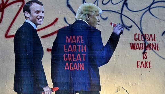 6月13日,法国巴黎,法国街头现马克龙与特朗普讽刺壁画。 “特朗普将重新考虑参与巴黎协定问题”,在法国《星期日报》16日刊登的对该国总统马克龙的专访中,马克龙透露上述信息。尽管有媒体认为,着眼美国2018年中期选举和2020年总统大选,特朗普可能会在气候问题上慎重考虑,但美国舆论仍对他是否真会改变立场持怀疑态度。 特朗普14日结束对法国的访问。法国《星期日报》16日称,马克龙在采访中表示,他认为美国总统特朗普有希望收回退出气候变化巴黎协定的决定。马克龙称,特朗普听取了他的意见,特朗普对他表示,将在“未来数月做决定”。马克龙还称,他与特朗普会谈时探讨了如何让美国重回巴黎协定的细节。欧洲电视一台认为,虽然气候问题是法美元首会谈中的分歧点,但美国应该已经感受到让其做出让步的压力。英国《卫报》16日援引英国维珍集团创始人理查德·布兰森的话称,特朗普应该已经后悔让美国退出巴黎协定。他认为,在企业和城市都坚决支持向低碳能源过渡时,特朗普却要退出巴黎协定,这“非常、非常奇怪”。 而在美国国内,选民已经在气候问题上对特朗普施压。美国媒体“Axios”15日称,对2018年国会中期选举中共和党的支持者来说,巴黎协定并不是个热门话题,但美国“政治”网站和哈佛大学陈曾熙公共卫生学院公布的最新联合调查结果显示,计划在2018年中期选举中支持民主党的选民中有半数称,特朗普宣布退出巴黎协定是他们支持民主党的重要因素。另有同等数量的人将白宫“通俄门”视为在中期选举中应考虑的头等大事。 美国《新闻周刊》认为,特朗普一向重视民调,他可能注意到了民众对巴黎协定的态度,因此改了口。特朗普13日在巴黎与法国总统马克龙召开新闻发布会时就表示,“关于巴黎协定可能会发生一些事,让我们拭目以待”。报道称,至于会发生什么事以及何时发生,只能靠猜测,尤其是在中期选举临近之时。严格意义上说,特朗普在2020年都无法让美国全面退出巴黎协定,但在那时,他将面对自己的下一场政治竞争——2020年11月3日的下届总统大选。 美国《华盛顿邮报》16日称,该报和美国广播公司公布的最新民调显示,受美国在海外领导力减弱、特朗普国内政策停滞不前、共和党医疗法案不得人心等因素影响,自今年春季以来,特朗普的民意支持率严重下滑,从4月的42%降至36%,不支持率上升5个百分点至58%。48%的受访者认为特朗普就职后,美国在世界上的领导力减弱。 不少美国媒体对特朗普是否真在考虑重回巴黎协定持怀疑态度。美国《时代》杂志网站15日称,特朗普暗示在巴黎协定问题上的决定可能会出现变化。但目前尚不清楚特朗普所说的变化是他可能改变主意继续让美国留在协定内,还是想就协定本身重新谈判。美国《纽约时报》15日社论称,特朗普现在是气候变化问题上的“孤家寡人”,他似乎给改变主意留了个口子,但没有人知道他的真正想法是什么。报道认为,尽管马克龙努力劝说特朗普,但特朗普与世界其他国家领导人在气候变化问题上的认知差距依然存在。特朗普对马克龙说的话没有任何意义,因为特朗普重申奥巴马政府减排承诺的可能性几乎为零。