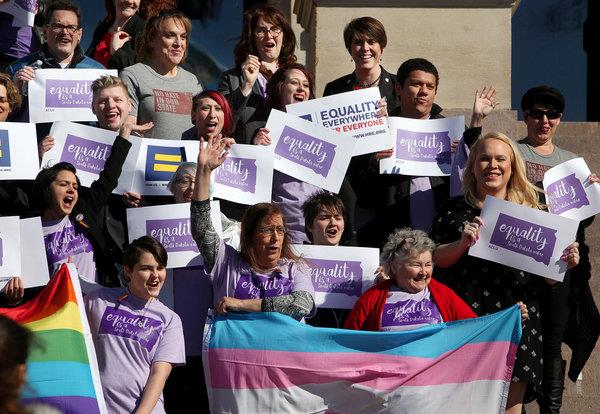 去年,在威斯康星州,另一项共和党发起的洗手间议案被提交至立法机构待审,但在跨性别权利活动人士的反对之下被击退,那些活动人士很多都只有十几岁。