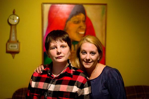 跨性别少年马修·迈尔斯和他的母亲贝丝·米勒在他们位于佛罗里达州奥卡拉的家里。