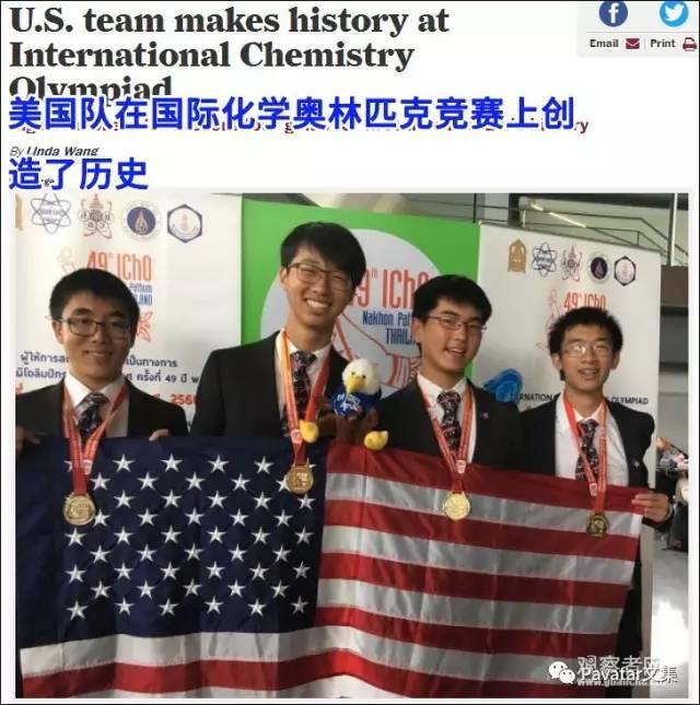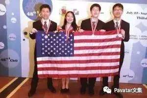 从左往右四位亚裔选手分别姓叶、刘、朴、王 美媒报道截图 这画风是不是有点眼熟?让我们看看国际中学生化学奥赛上前几届的美国队。